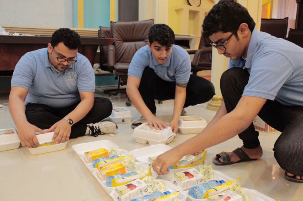 متطوعون يرتبون وجبات إفطار الصائم.