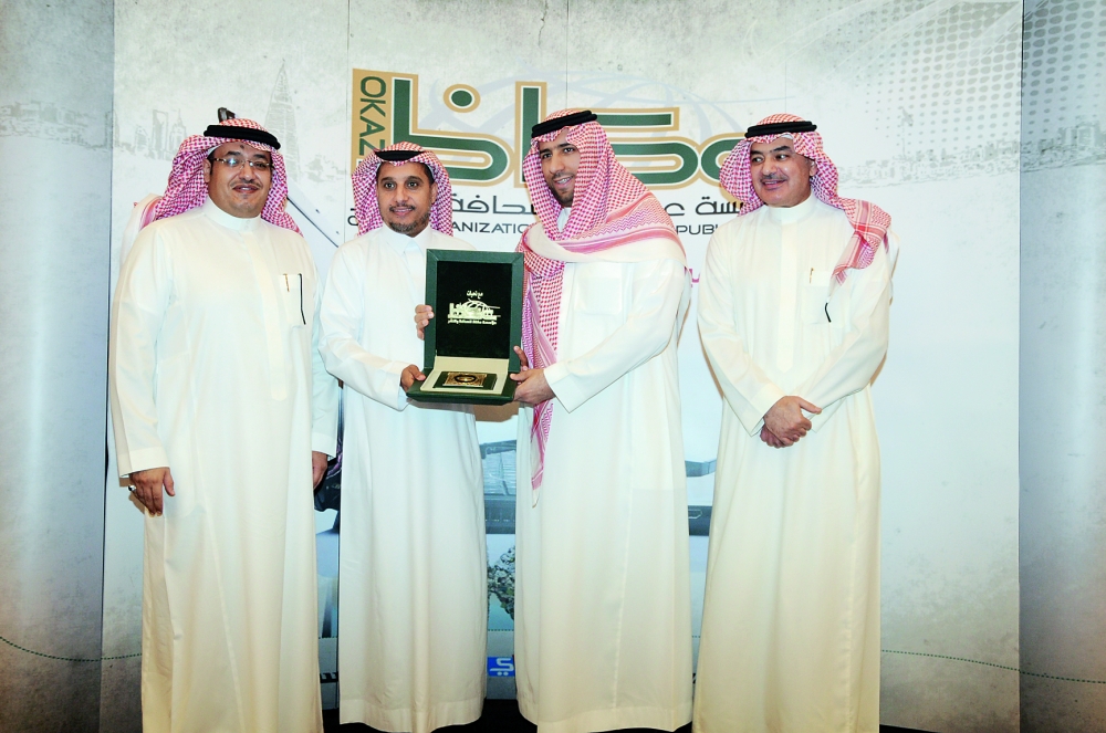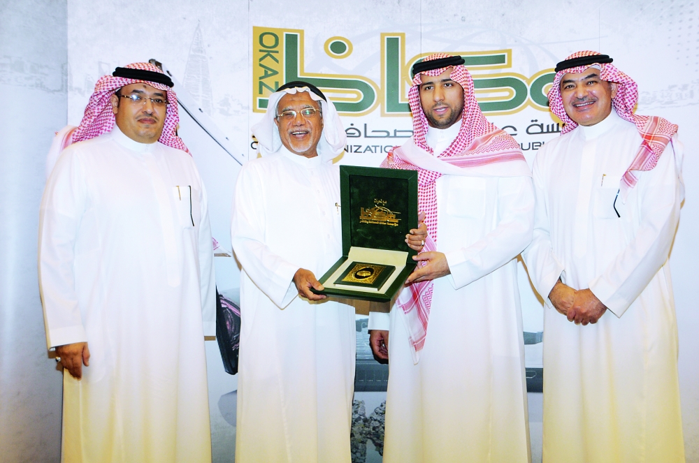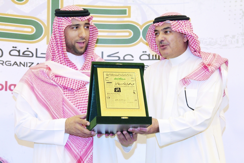 ثم عقب ذلك تفضل مساعد المدير العام أحمد البطاح بتقديم إهداء عكاظ إلى الأمير فيصل بن سلطان بن ناصر وذلك تقديراً من «عكاظ» على دعمه الدائم والمستمر لبرامج المؤسسة، وأداء مماثل إلى الدكتور محمد القحطاني مستشار وزير العمل المشرف العام على فرع وزارة العمل والتنمية الاجتماعية بمنطقة مكه المكرمة.