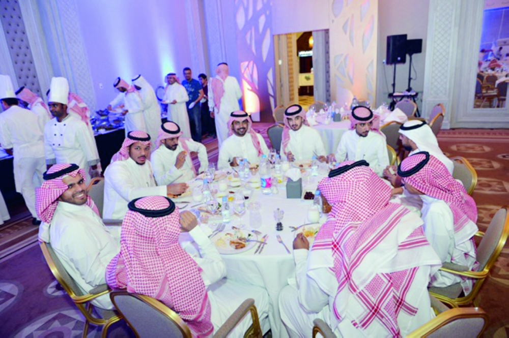 منسوبو الجامعة على مائدة الإفطار. (تصوير: محمد درويش)