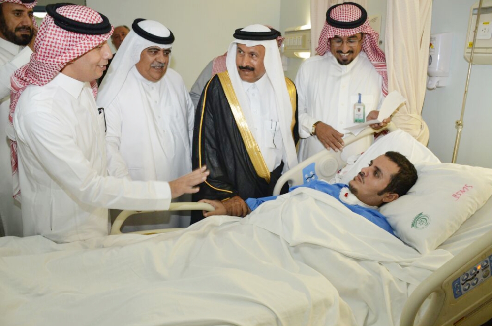 السفير علي بن عواض يتقدم أصدقاء المجلس لزيارة مصابي الحد الجنوبي.