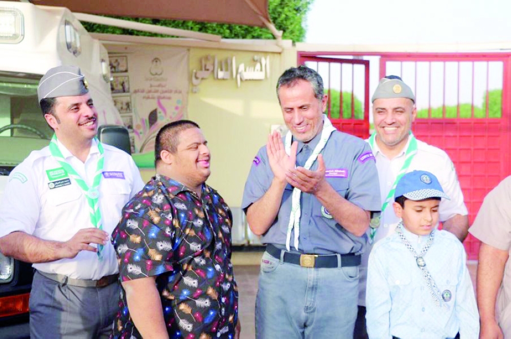 منسوبو الكشافة مع أحد النزلاء. (عكاظ)