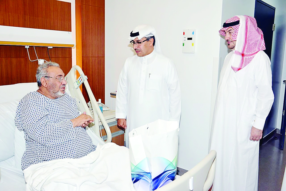 العبداللطيف ورحيم يطمئنان على أحد المرضى. (عكاظ)