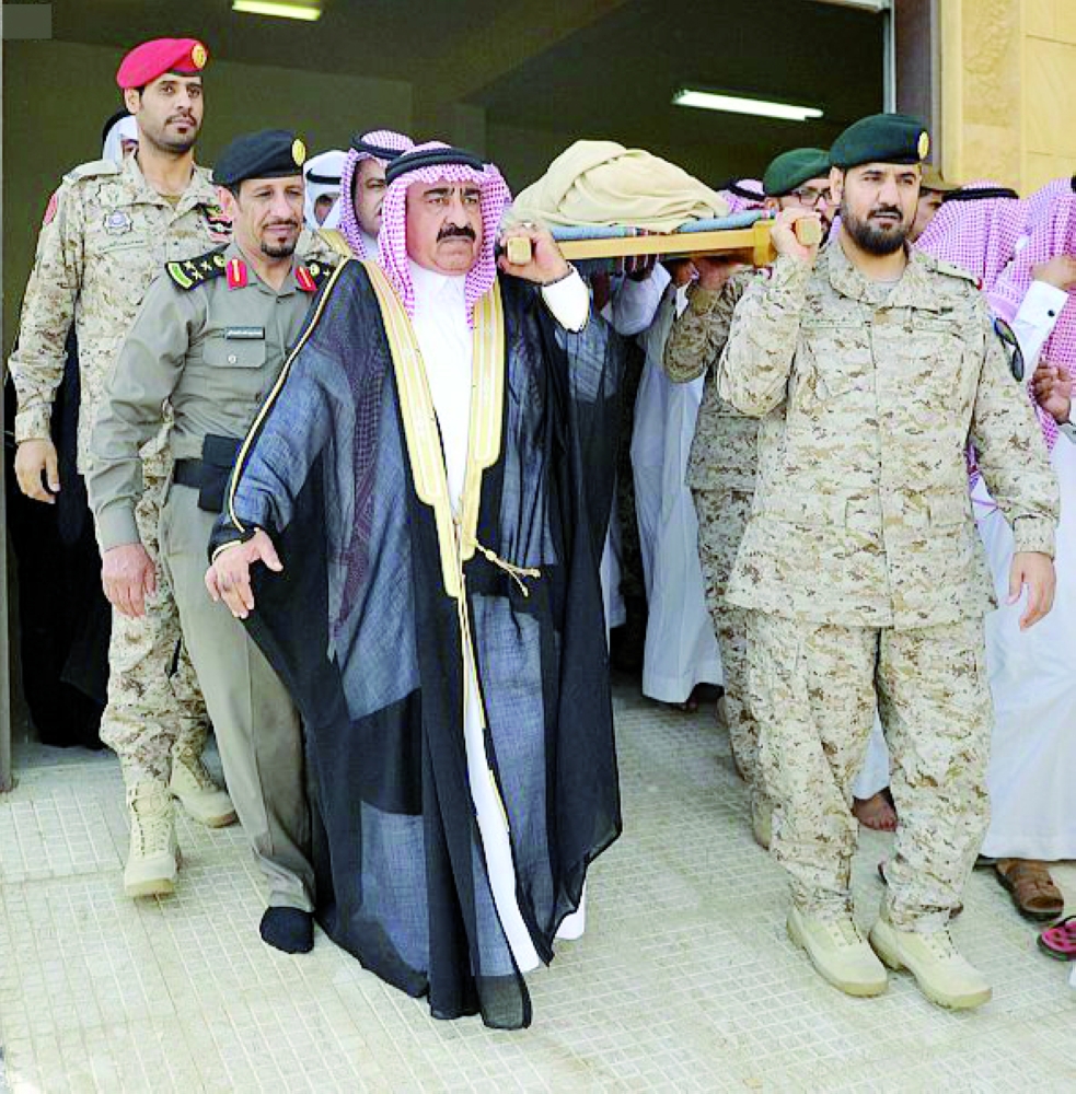 نيابة عن أمير منطقة القصيم الأمير الدكتور فيصل بن مشعل بن سعود أدّى وكيل إمارة منطقة القصيم للشؤون الأمنية إبراهيم بن محمد الهذلي مع جموع المصلين في جامع الشايع بمحافظة الرس بعد صلاة العصر أمس الصلاة على شهيد الواجب الجندي أول فيصل حامد العتيبي، رحمه الله، الذي استشهد في ميدان العز والشرف بالحد الجنوبي، بحضور محافظ الرس محمد بن عبدالله العساف، ومساعد قائد معهد طيران القوات البرية العميد الطيار الركن عبدالله بن محمد الشهراني، وعدد من القيادات الأمنية والمسؤولين وأقارب الشهيد.