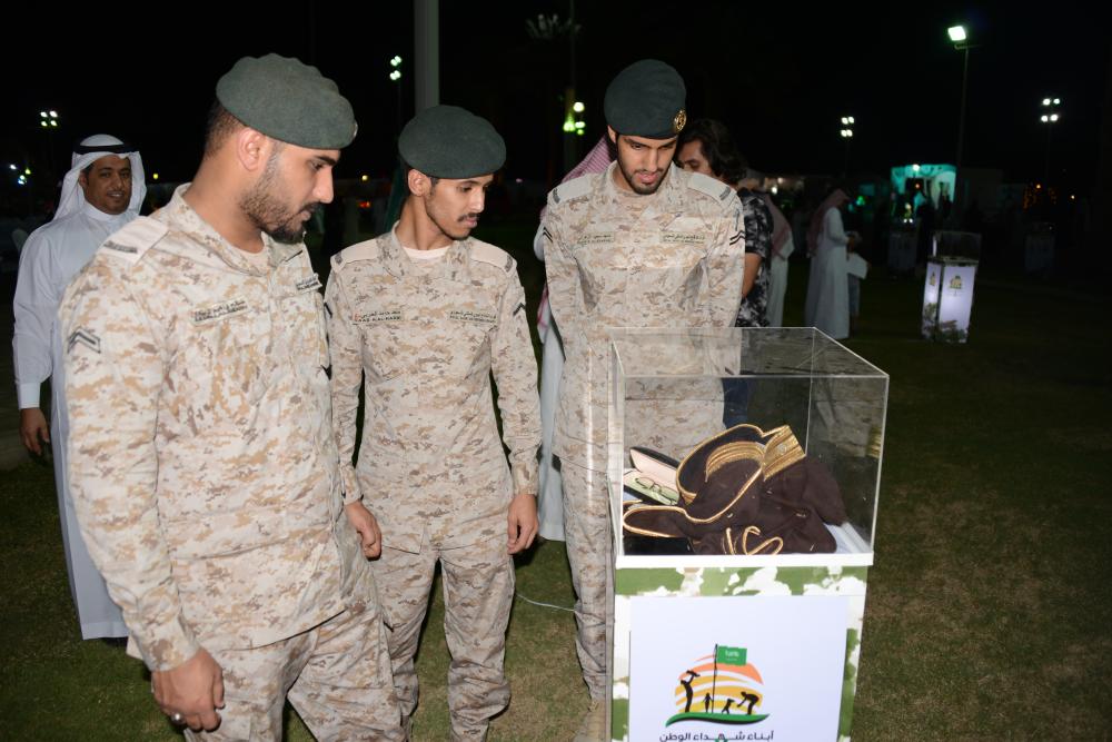 عبارات الفخر بالشهادة في سبيل الدين والدفاع عن الوطن لا تغيب عن ألسنة أبناء شهداء الوطن الذين حضروا «فخر واعتزاز»، وهم يحملون معهم «مشلح، ونظارة، وأوسمة، وصور الشهداء»، لتصبح منصات شرف وبطولة أمام الحضور الذين تسابقوا لتوثيقها والفوز بصورة لها لعرضها لأبطال حقيقيين دافعوا عن الوطن ونالوا شرف الشهادة.