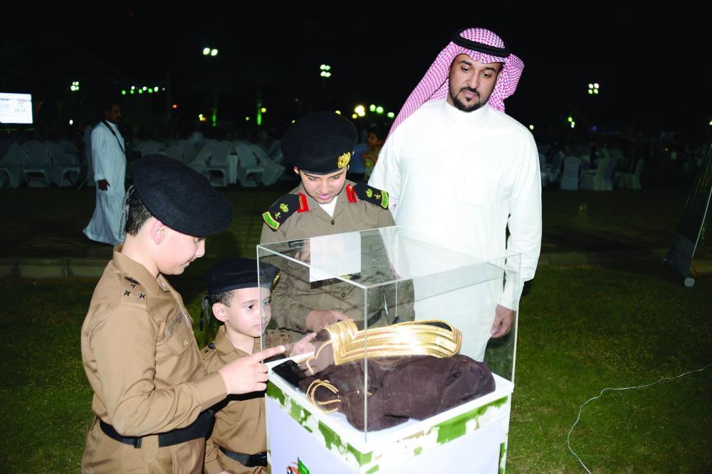 وحضر ماجد وعبدالعزيز ونايف أبناء الشهيد «كتاب العتيبي» هذه المناسبة باللباس العسكري، مؤكدين أنهم أبناء شهيد وسيسيرون على دربه. وقال ماجد: «إنهم شهداء الدين والوطن، ولم يخسروا شيئا فهم بيننا وبشهادتهم نعطر أيامنا».