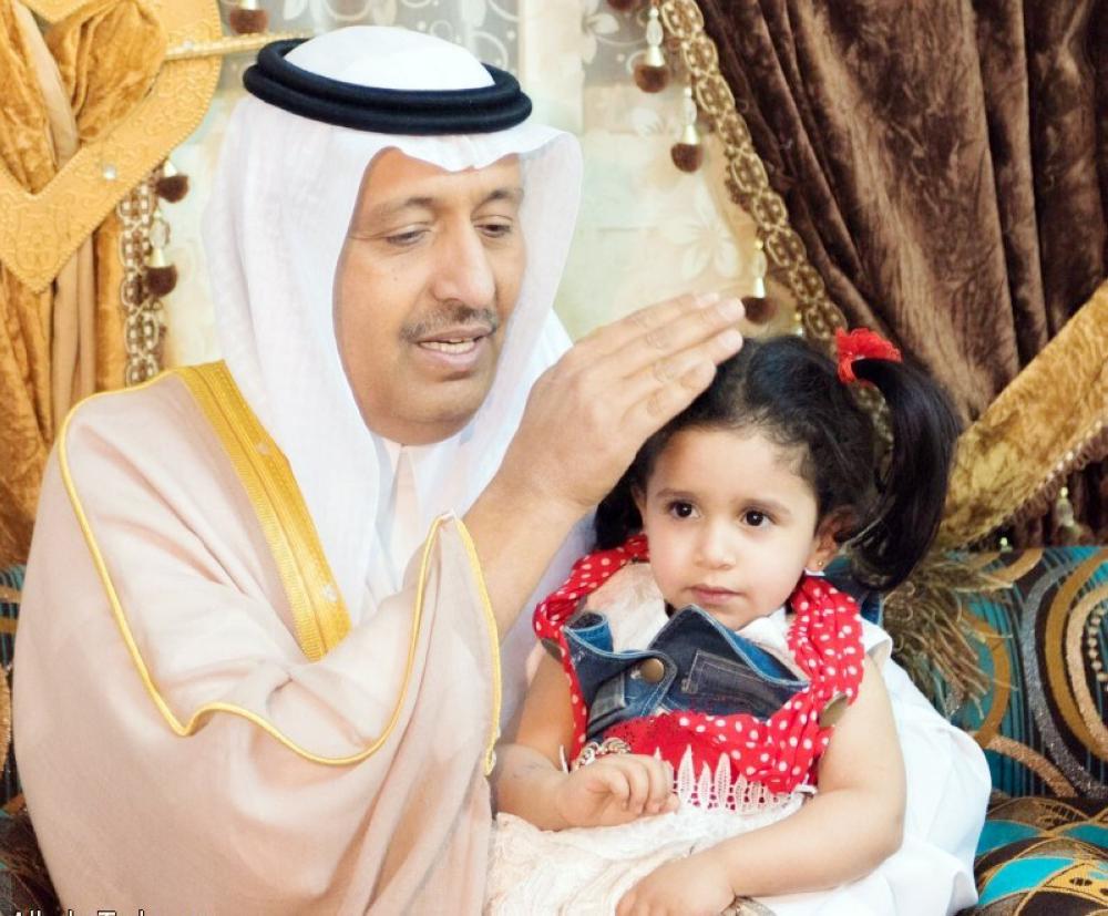 الأمير حسام بن سعود محتضنا رهام ابنة الشهيد.