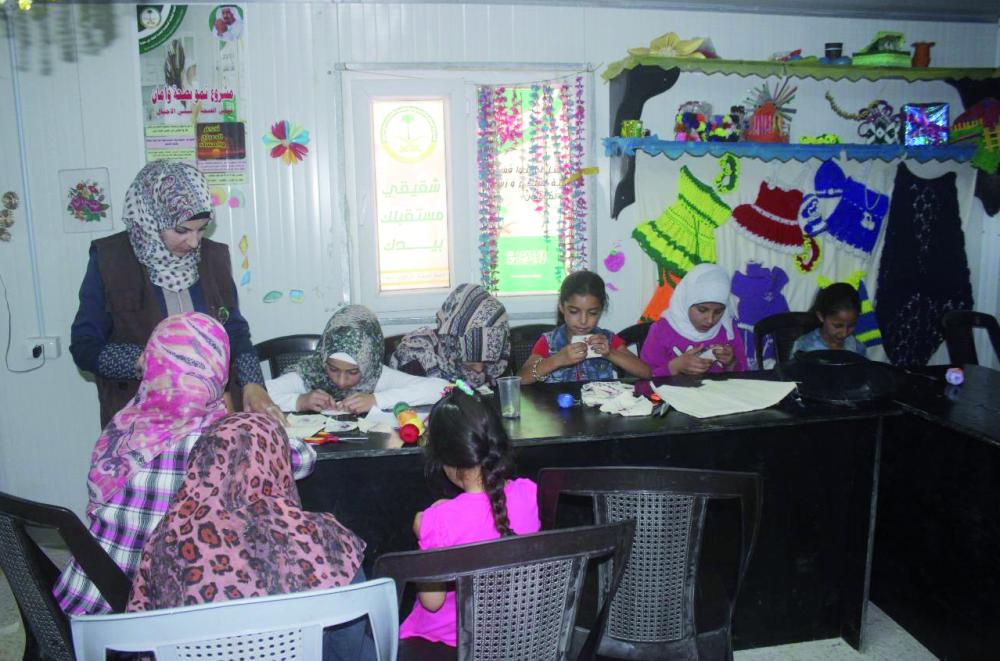 فتيات سوريات يتلقين تدريبا مهنيا في المركز السعودي بمخيم الزعتري. (عكاظ)