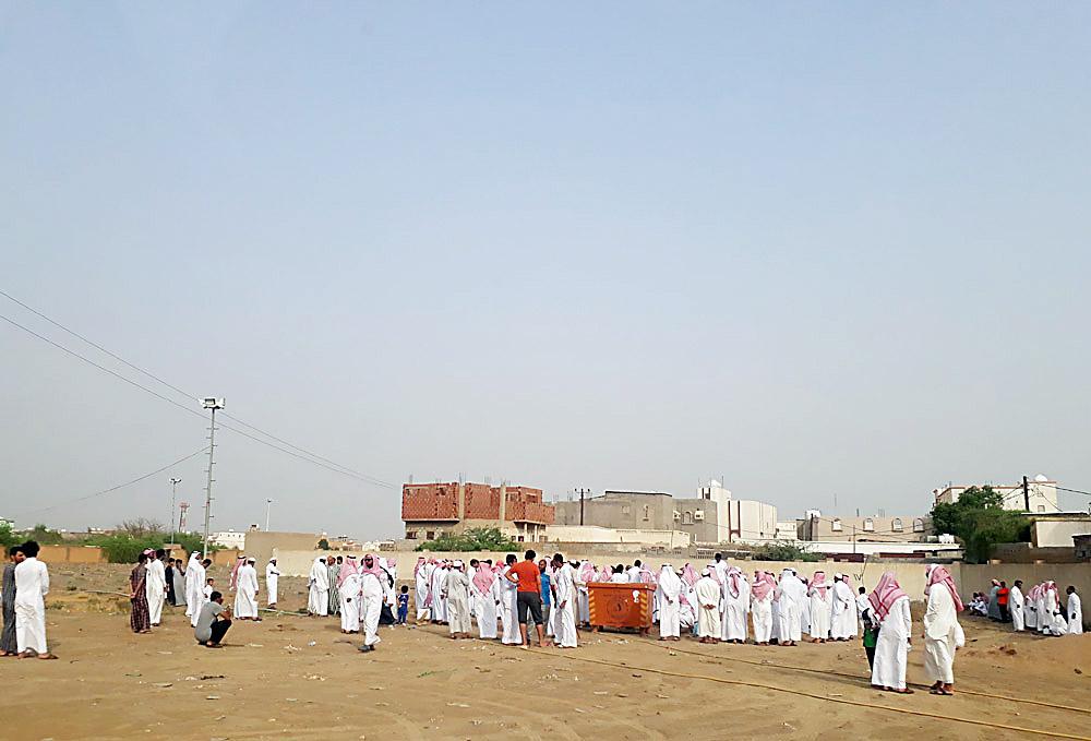 جموع غفيرة أثناء مواراة جثمان الفقيد. (عكاظ)