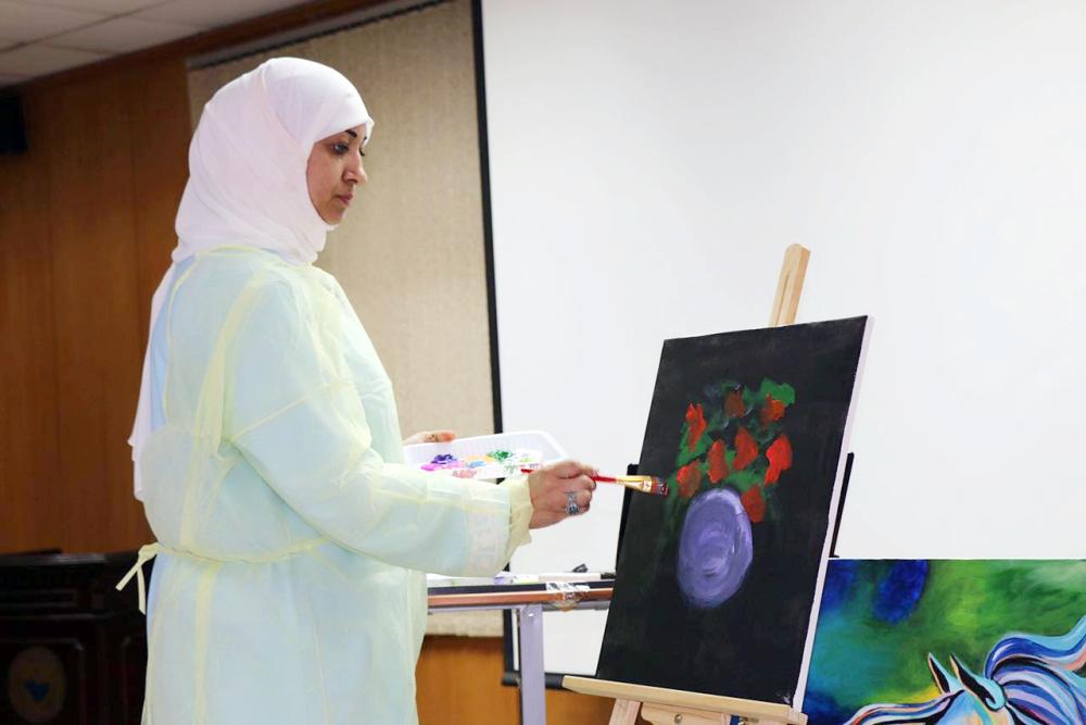 وشمل البرنامج محاضرة تضمنت عددا من الموضوعات حول دور العلاج بالترفيه في إزالة الضغوط، وممارسة الهوايات، والألوان وكيف تؤثر الألوان في حياتنا، إضافة إلى ورش للرسم التشكيلي للمصابين بعنوان «ارسم لوحتك».