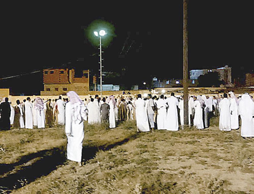 أثناء مواراة جثمان الفقيد في مقبرة ضمد. (عكاظ)