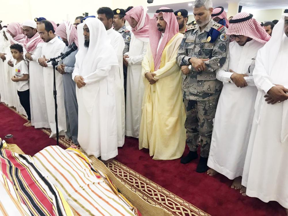 محافظ صبيا مؤدياً الصلاة على الشهيد أمس. (عكاظ)