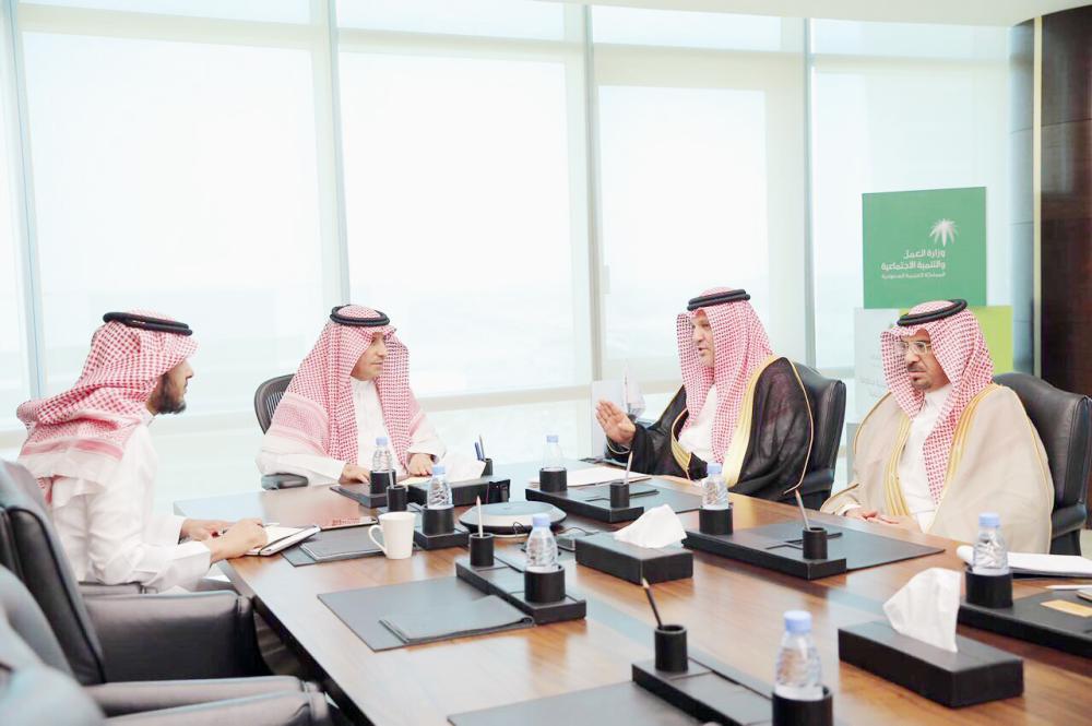 وزير العمل أثناء الاجتماع مع رئيس مجلس الجمعية. (عكاظ)