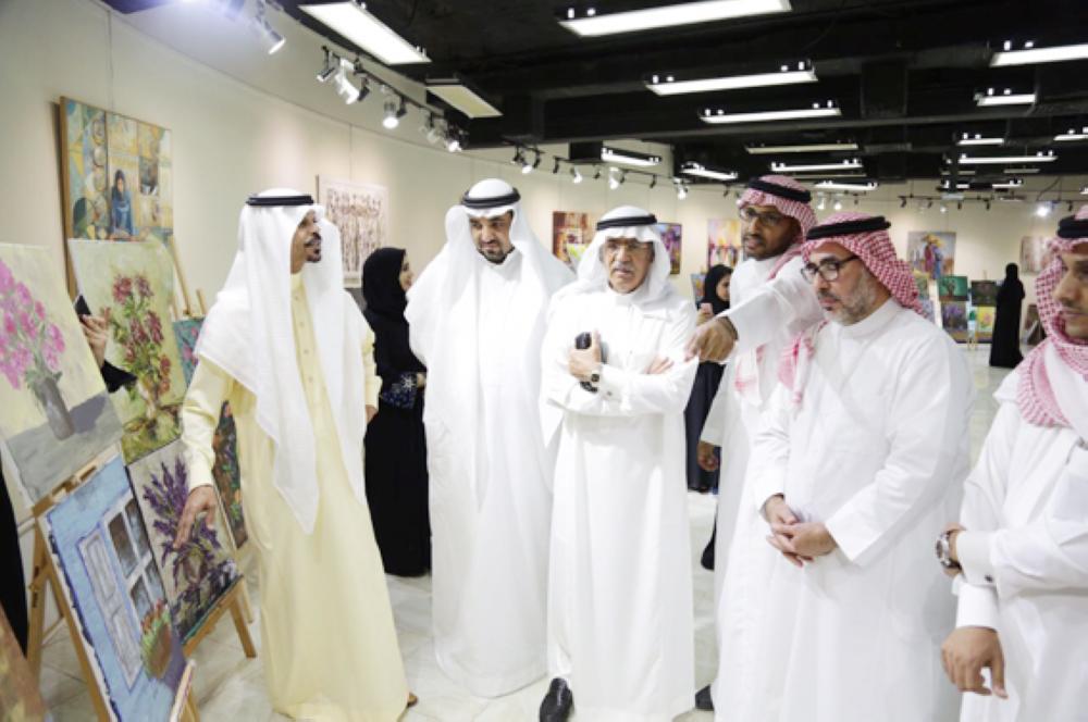 صبان يطلع على اللوحات التشكيلية. (عكاظ)