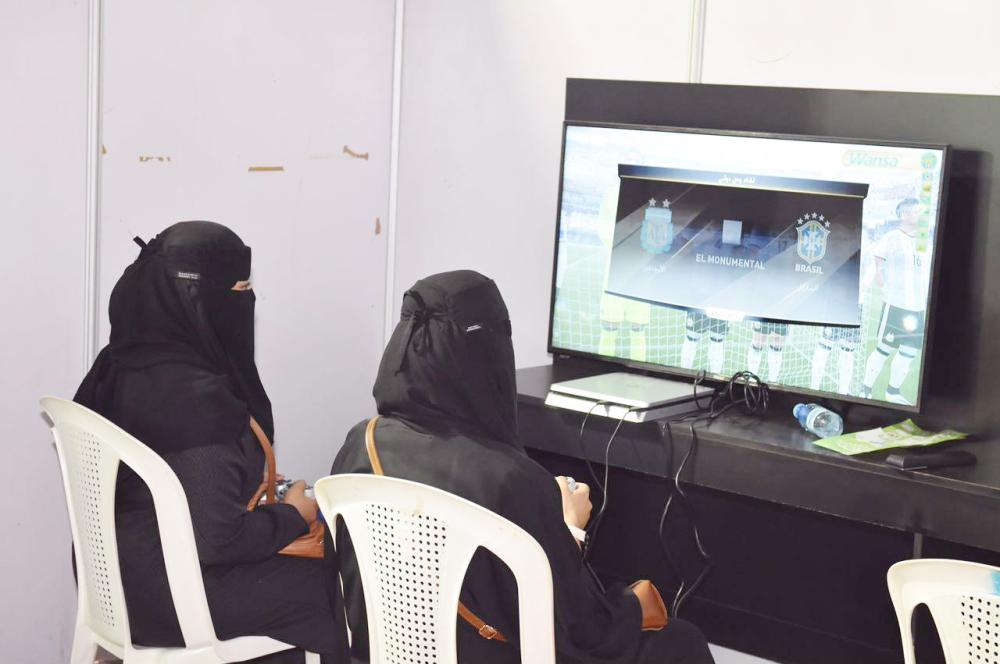 فتاتان خلال مشاركتهما في المهرجان. (عكاظ)