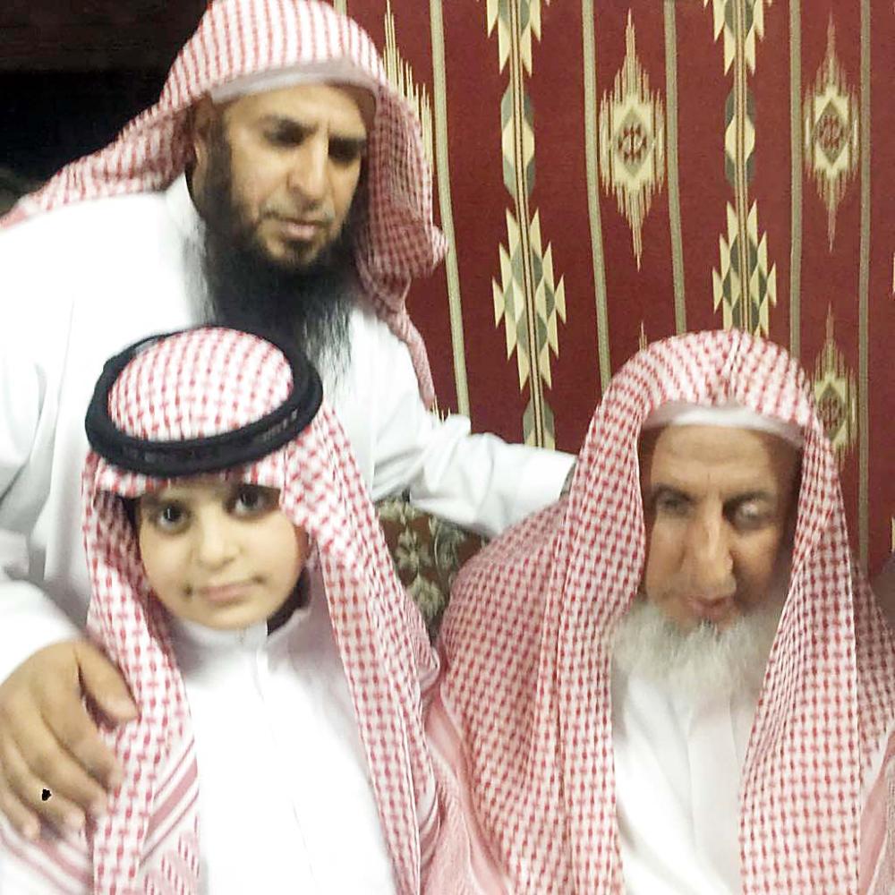 المفتي مع ابن الفقيد وشقيقه عثمان. (عكاظ)