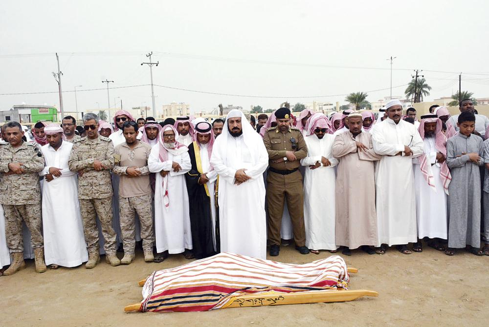أداء الصلاة على الشهيد الحدادي. (عكاظ)