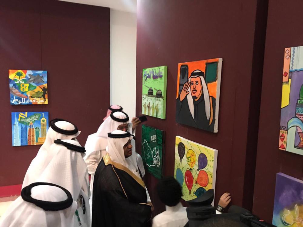 وقام الثقفي فور وصوله بتدشين المعرض المصاحب للمناسبة والذي تضمن عددا من الأعمال الفنية الطلابية التي تجسد النهضة والتطوير التي شهدتها المملكة منذ توحيدها.