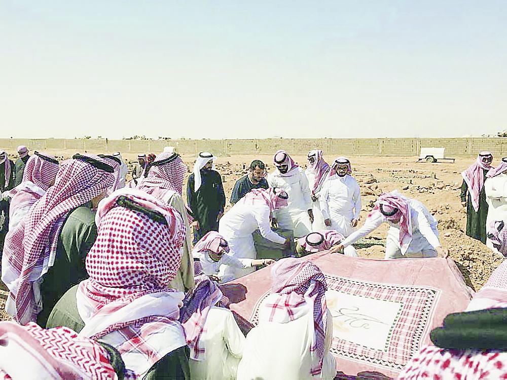 مشيعو والدة الكردي في مقبرة تبوك العامة. (عكاظ)