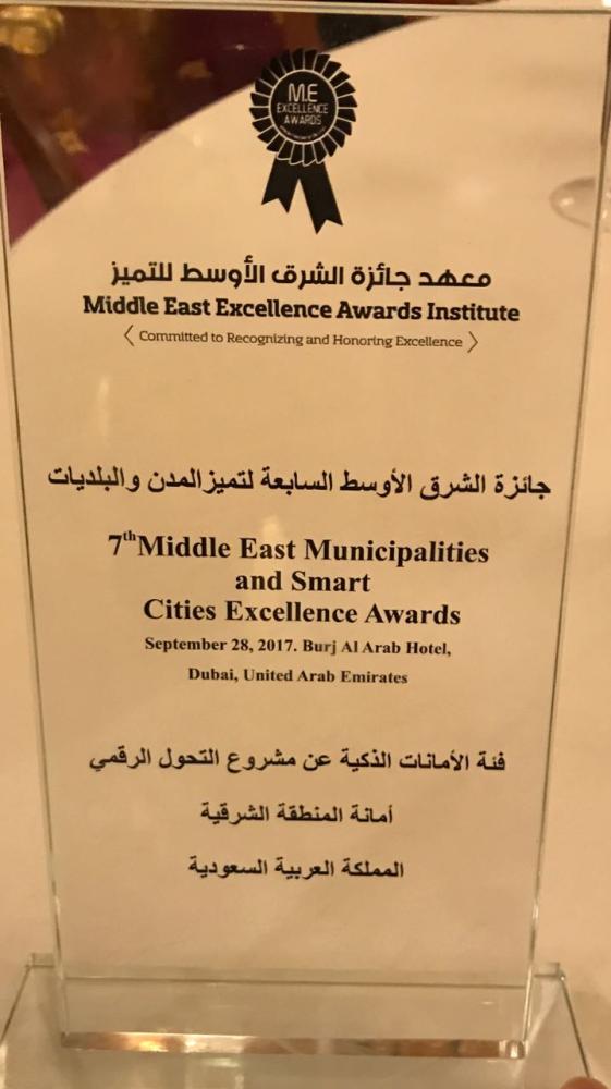 جائزة الشرق الأوسط لتميز المدن والبلديات الذكية لـ«أمانة الشرقية»