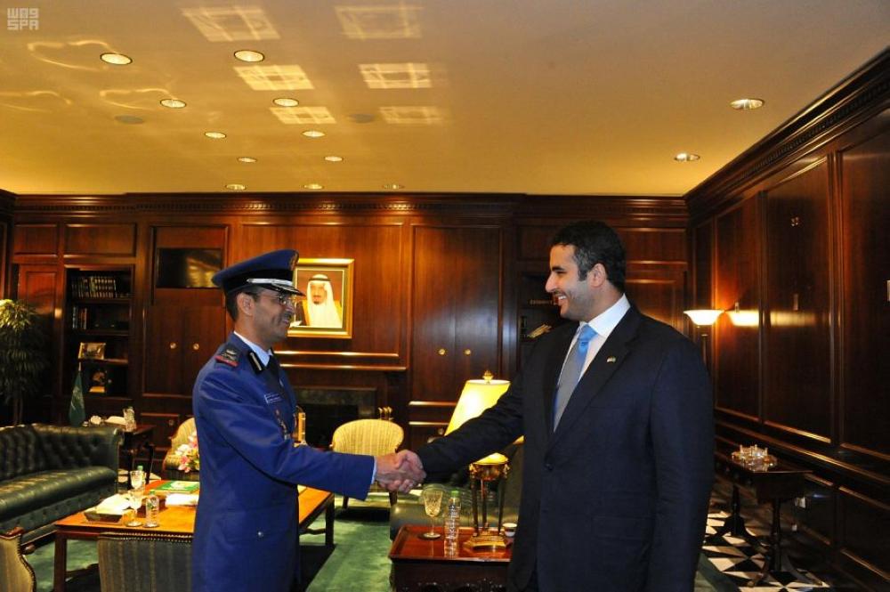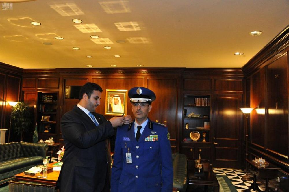 خالد بن سلمان يقلد الملحق العسكري رتبته الجديدة