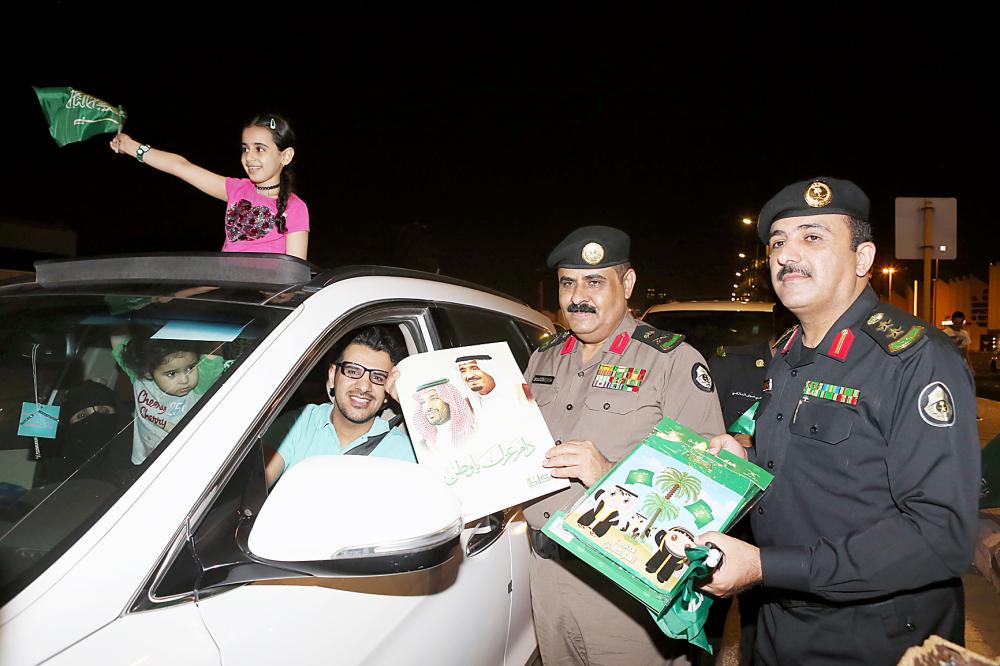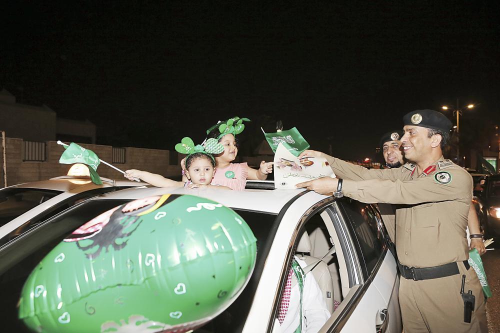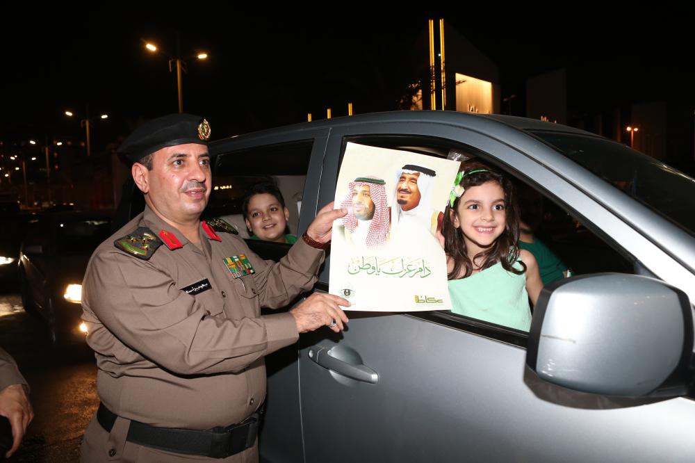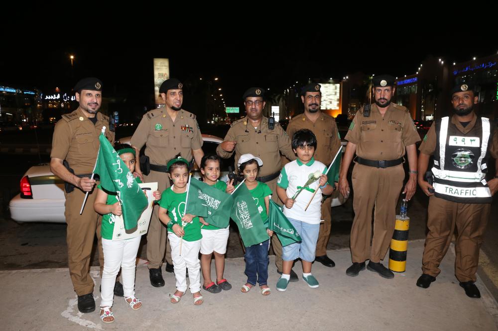 مدير شرطة منطقة مكة المكرمة اللواء سعيد القرني عبر عن شكره لـ«عكاظ» على التعاون مع رجال الأمن بالميدان من خلال تعزيز هذه المناسبة الوطنية العزيزة على كل فرد من أبناء الوطن، وقال نحمد الله على الروح المثالية التي لمستها من المواطنين في الميدان عبر الاحتفال اللائق الذي يعكس روح الانتماء والمواطنة لكل مواطن بأرجاء المملكة، من جهته عبر مدير شرطة جدة العميد عبدالوهاب عسيري عن سعادته لتواجده بالميدان مع أبناء الوطن في هذا اليوم والذي يعتبر مفخرة لكل مواطن ولكل جندي يحمل شرف الدفاع عن الوطن.