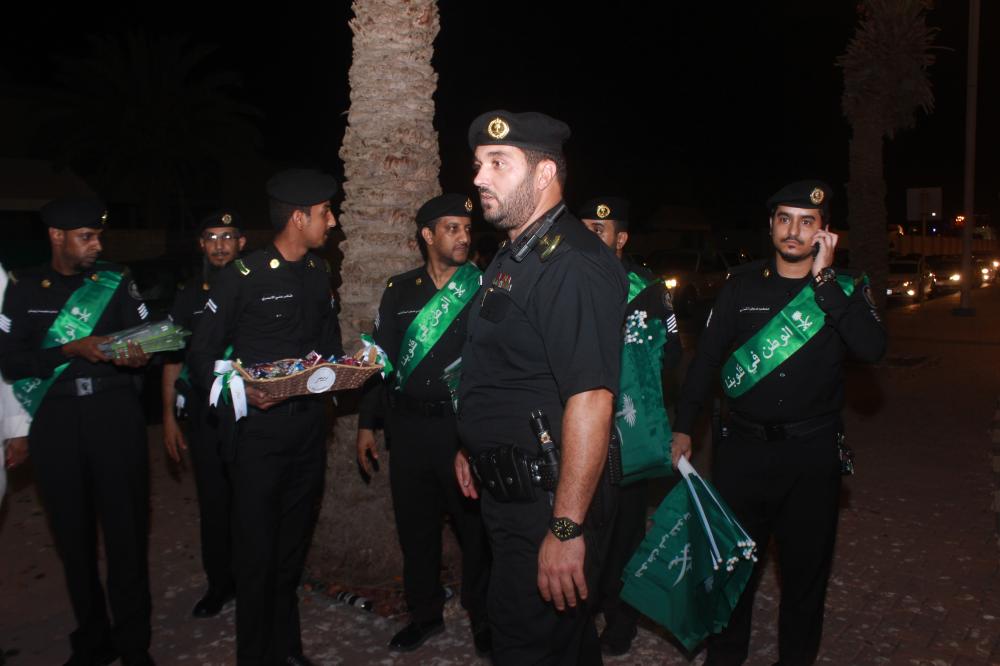 وفي الوقت ذاته قال العقيد بندر الشريف مدير دوريات الأمن بمحافظة جدة أننا نتشارك بدوريات الأمن الاحتفال بتقديم الهدايا بيوم الوطن والمحافظة على الأمن بالتواجد في الميدان، معبراً عن شكره لـ«عكاظ» على التعاون ونقل الحدث المشرف بيوم الوطن.
