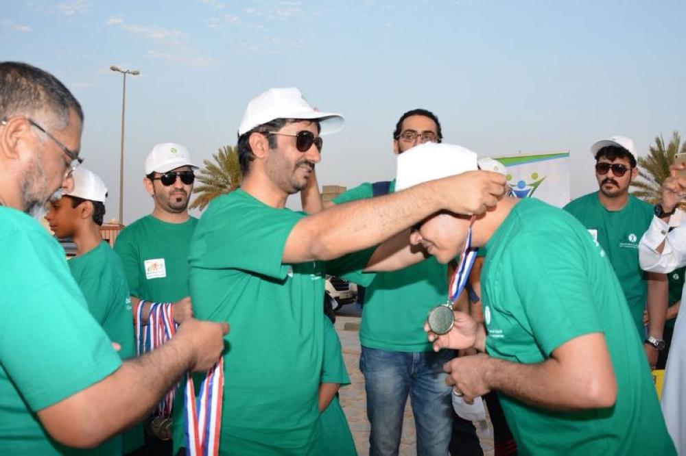 وفي ختام البرنامج قام قائد الفريق بتقديم شكره وتقديره لنادي الجوف لذوي الاحتياجات الخاصة على رعايتهم ودعمهم على هذه الفعالية وتكفلهم بتأمين كافة احتياجات الفريق وتقديم الهدايا و الجوائز للمشاركين، بعد ذلك تم توزيع ميداليات المشاركة التذكارية للمشاة و تقديم الشهادات والكؤوس للجهات و الهيئات المشاركة من خلال أفرادها.