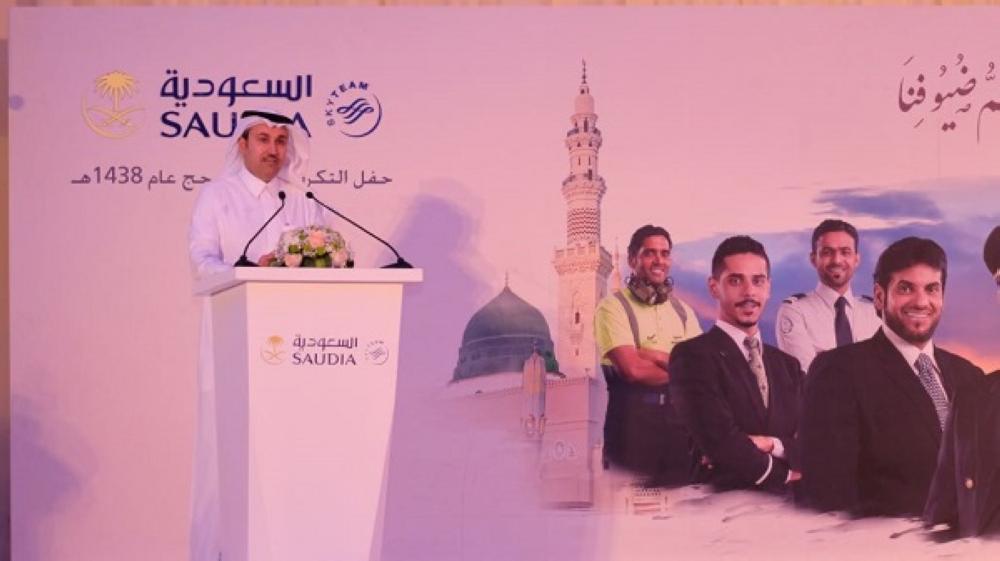 وبدأ الحفل بالقرآن الكريم، ثم قدم نائب الرئيس للعمليات الأرضية راشد بن محمد العجمي عرضاً حول الاستعدادات التي سبقت بدء موسم الحج والتي مكّنت "السعودية" من تنفيذ خطتها بكل نجاح والتي تمحورت حول الأهمية المطلقة للتعاون والتنسيق مع الإدارات الحكومية بمطاري الملك عبدالعزيز والأمير محمد بن عبدالعزيز الدوليين والجهات ذات العلاقة بالحج، إضافة إلى التخطيط المبكر للجدول لضمان انسيابية وصول رحلات الحج في مرحلة القدوم ومغادرتها بعد الحج في مواعيدها المحددة وتلافي أي تكدس، وكذلك إصدار بطاقات صعود الطائرة لرحلات العودة وتعبئة بطاقات الجوازات قبل وصول الحجاج للمملكة، علاوةً على تأمين ملاحين على رحلات الحج يتحدثون اللغات المختلفة للحجاج، إلى جانب إصدار نشرات توعية بعدة لغات عن إجراءات السفر والأمتعة المسموح بنقلها على الطائرات وتوزيعها لبعثات الحج ومؤسسات الطوافة بالتنسيق مع وزارة الحج والعمرة، يضاف إلى ذلك دعم كافة القطاعات التشغيلية بالإمكانات البشرية والآلية اللازمة لتقديم أفضل الخدمات، إضافة إلى تشكيل فريق تنفيذي مشترك يضم كافة القطاعات التشغيلية لمتابعة العمليات اليومية والحركة التشغيلية على مدار الساعة وتقديم الدعم والمساندة عند الحاجة، وكذلك التخطيط المثالي في تفويج الحجاج من مكة المكرمة والذي ساهم في وصول الحجاج إلى المطار في الوقت المحدد ومغادرة الرحلات في مواعيدها.