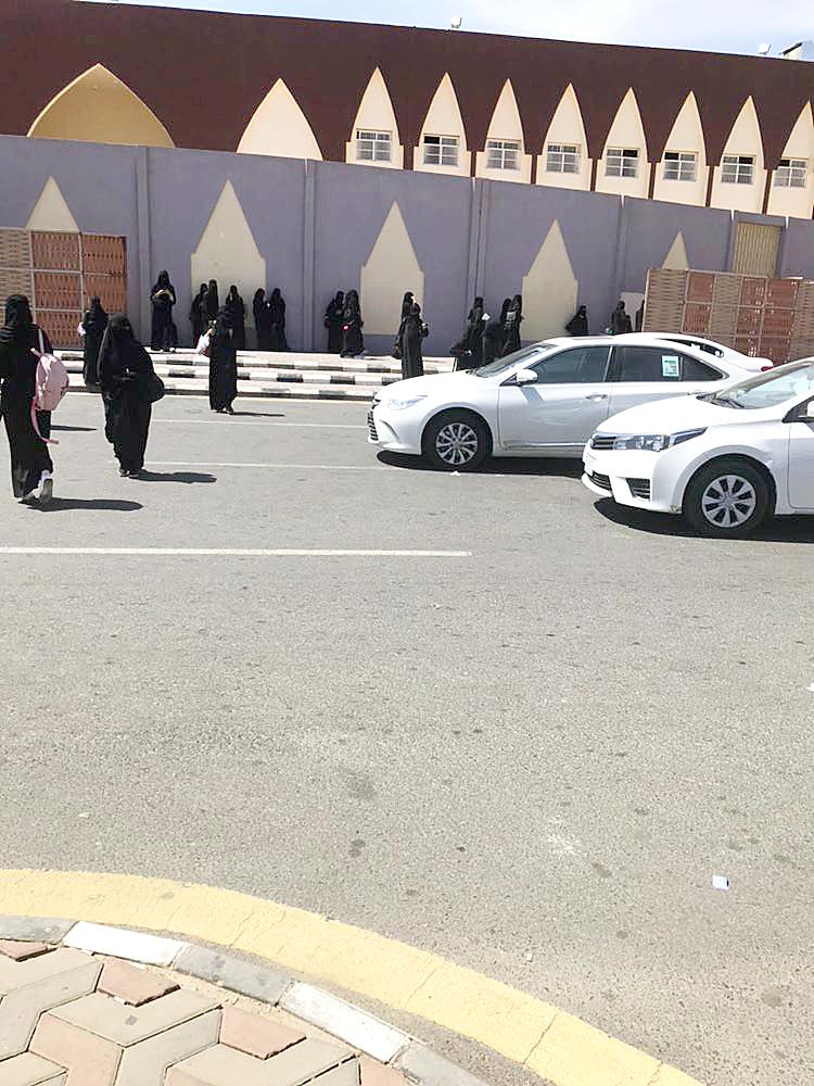 طالبات في مدخل جامعة الطائف. (عكاظ)