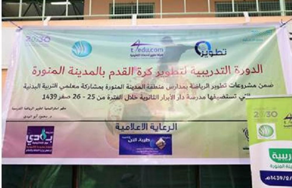شارك 26 معلما من معلمي التربية البدنية بمدارس منطقة المدينة المنورة بالدورة التدريبية لكرة القدم، التي نظمتها شركة تطوير للخدمات التعليمية، وبإشراف من الإدارة العامة للتعليم بالمنطقة، ممثلة بقسم التربية البدنية.