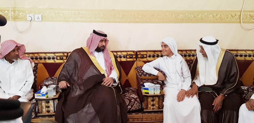 الأمير محمد بن عبدالعزيز مواسيا ذوي الشهيد عتودي. (عكاظ)