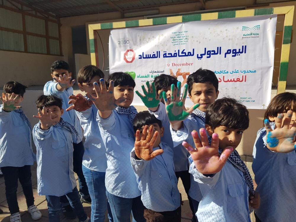 شارك أكثر من 500 طالب من مدارس تعليم محافظة القطيف في ساعة النشاط اليومي بالتوقيع بكامل يدهم اليمنى على قماش بطول 150 مترًا كرسالة تعبيرية وفنية من عمل طلاب المرحلة الابتدائية لمنع وإيقاف أي فساد في أي زمان وأي مكان، وذلك ضمن البرامج التوعوية والفعاليات والأنشطة التثقيفية التي نظمت احتفاءً باليوم الدولي لمكافحة الفساد.