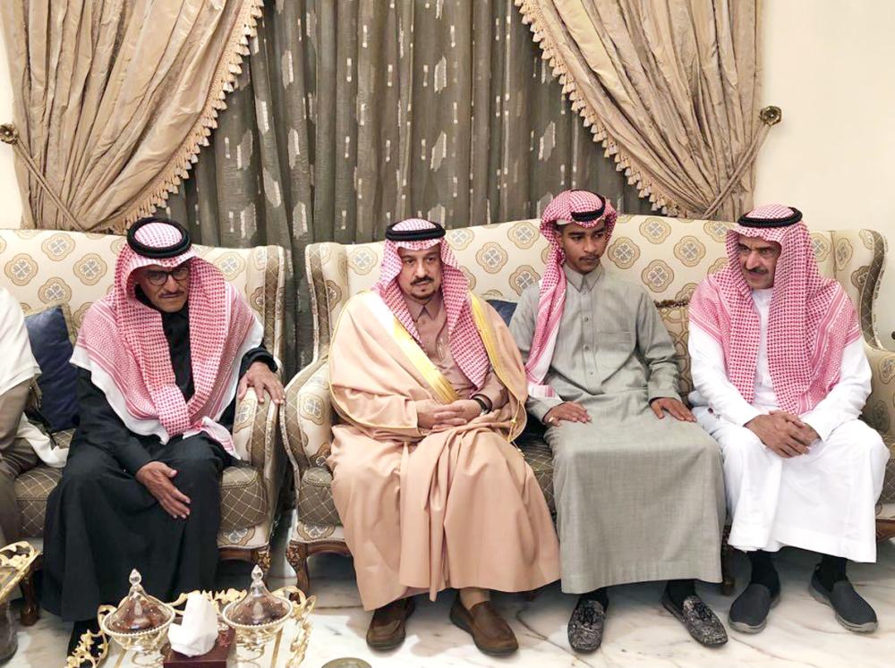 الأمير فيصل بن بندر مواسيا أسرة العمير أمس. (عكاظ)