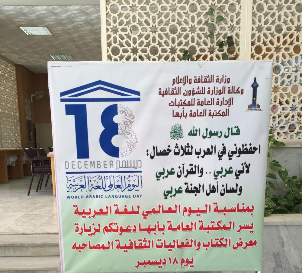 تُطلق المكتبة العامة بأبها، اليوم (الإثنين) 18 من ديسمبر فعالياتها الثقافية بمناسبة اليوم العالمي للغة العربية، وذلك بمشاركة عدد من الجهات في منطقة عسير.