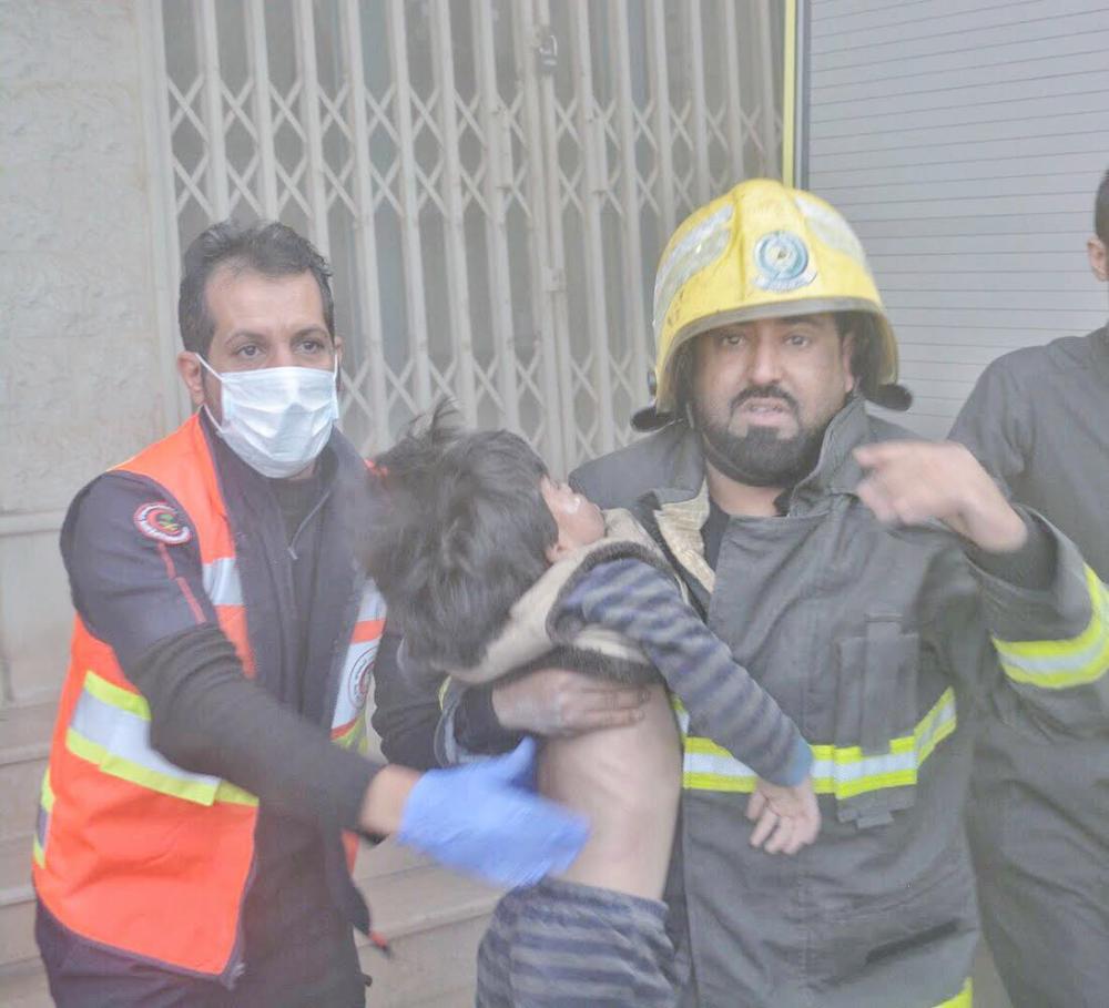 من جهة أخرى، أوضح المتحدث باسم الدفاع المدني في حائل المقدم نافع الحربي، أنه خلال مباشرة رجال الدفاع المدني لحريق شب في عمارة سكنية بإحدى الشقق في الدور الثاني، تعرض أحدهم وهو مشعل العنزي لاختناق أثناء محاولته إنقاذ سيدة بعد أن أعطاها مضخة الأوكسجين التي كانت بحوزته، وتم إسعافهما وأدخلا قسم العناية المركزة.
