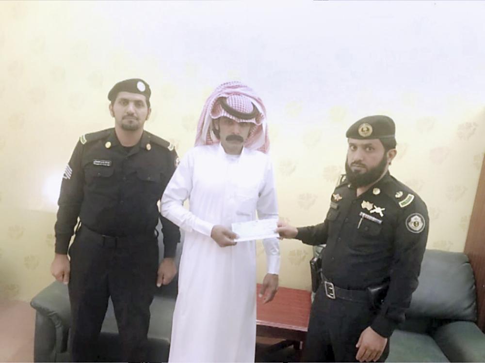 وسلم قائد دوريات الأمن بمحافظة وادي الدواسر الرائد عبدالرحمن بن شري في مكتبه أمس، المسعري المكافأة المالية.
