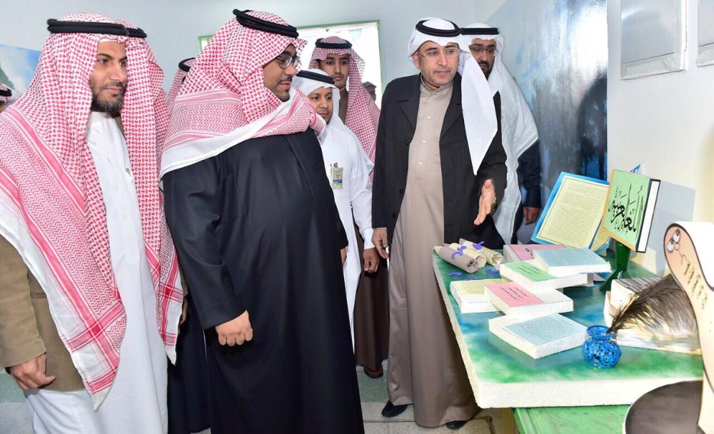 واستهل الأمير جولته بمشاهدة معرض احتوى على أعمال الطلاب، والتقى بإدارة المدرسة والمعلمين والمراقبين على لجان الاختبارات، واستمع لشرح عن خطة العمل المتبعة لهذا العام الدراسي في الاختبارات.