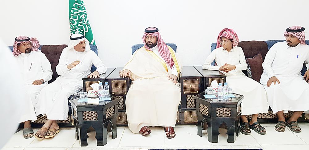 الأمير محمد بن عبدالعزيز معزيا ذوي شهداء الداير.(عكاظ)