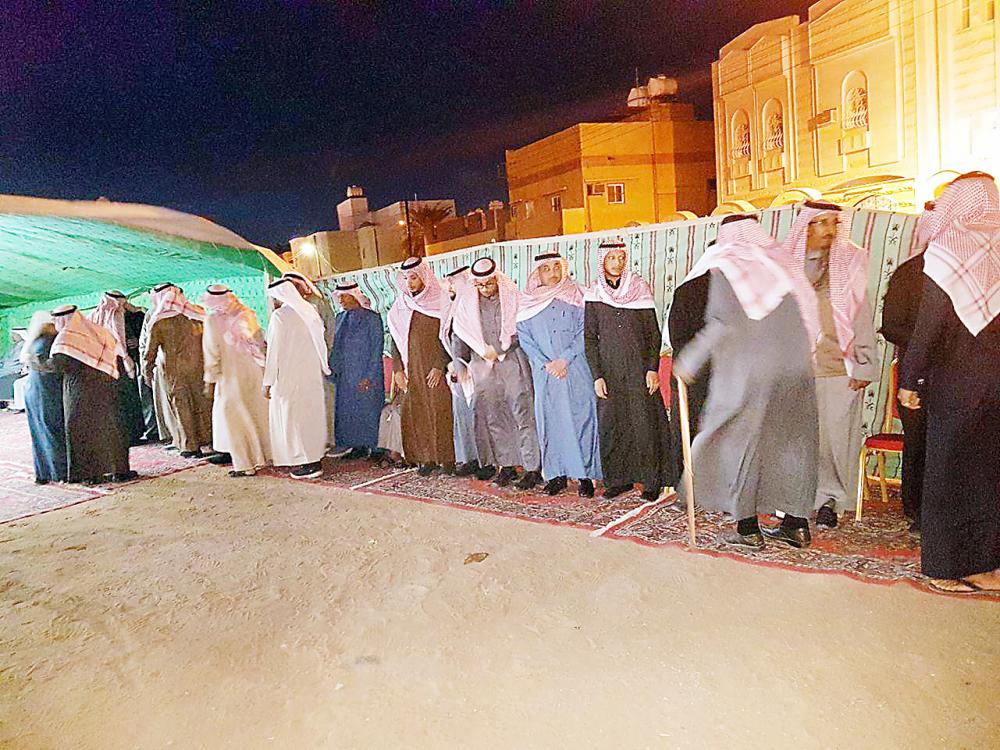 ذوو الفقيدة أثناء تلقّي التعازي أمس.(عكاظ)