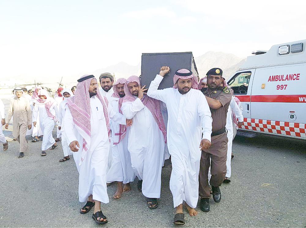 جثمان الشهيد الربعي محمولا على الاكتاف. (عكاظ)