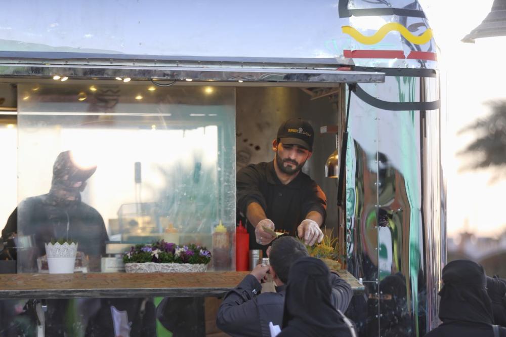 وفي ساحة المهرجان مقابل معرض الزيتون يشارك أحد الباعة مهند البديوي بالفود ترك الخاص به «برجر» وذكر أنه يدير العمل مع طاقم شباب سعودي يقومون بتجهيز المأكولات الطازجة والوجبات السريعة والعصائر.