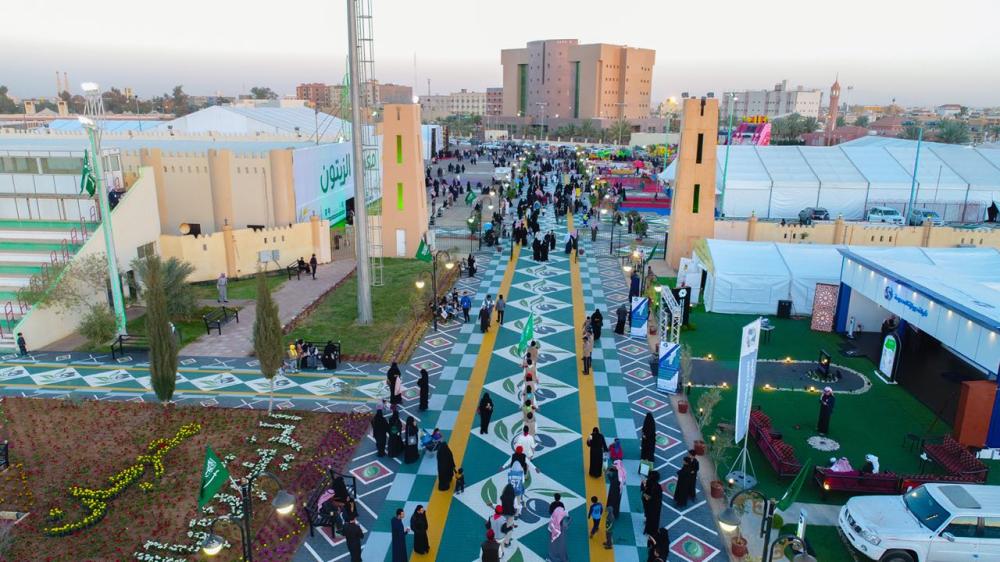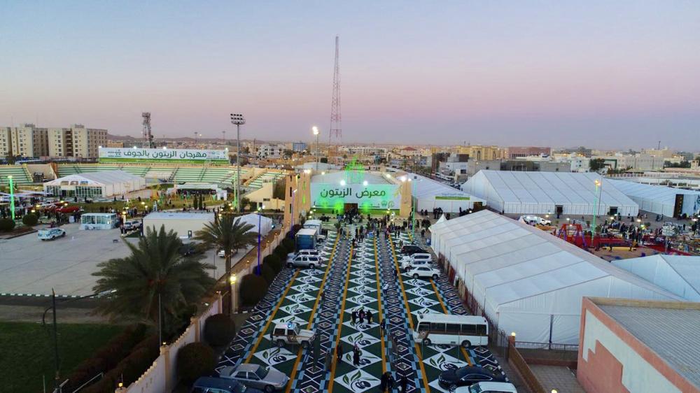 وقال أمين الجوف رئيس لجنة المهرجان العليا المهندس عجب بن عبدالله القحطاني، أن أمانة المنطقة قامت بتحويل المركز إلى لوحة تشكيلية عبر لوحة أرضية ملونه كسيت فيها ممرات المركز الذي يحتضن مهرجان الزيتون، ولفت إلى أنه تم اختيار شكل السجادة مستوحاة من الموروث الشعبي للمنطقة، حيث تضمنت شكل السدو الذي عرفت بإنتاجه سيدات المنطقة دمج معه حبات وأوراق الزيتون منتج المنطقة وهوية المهرجان.