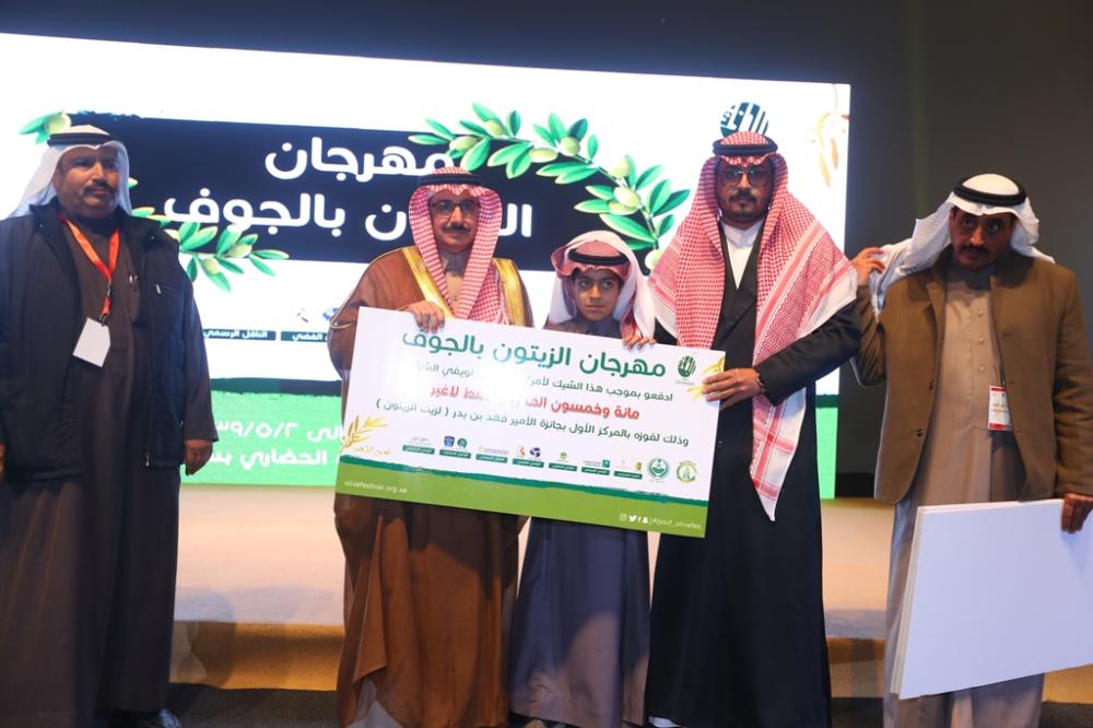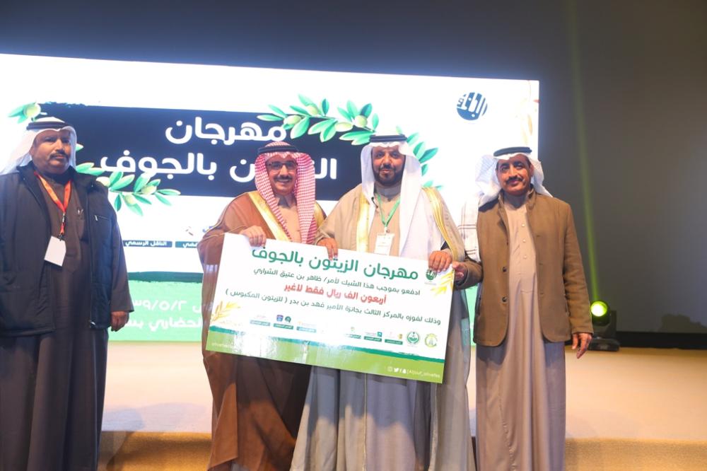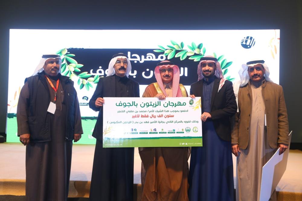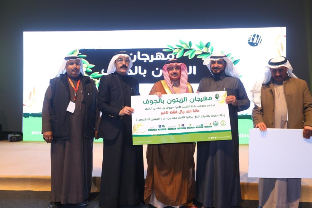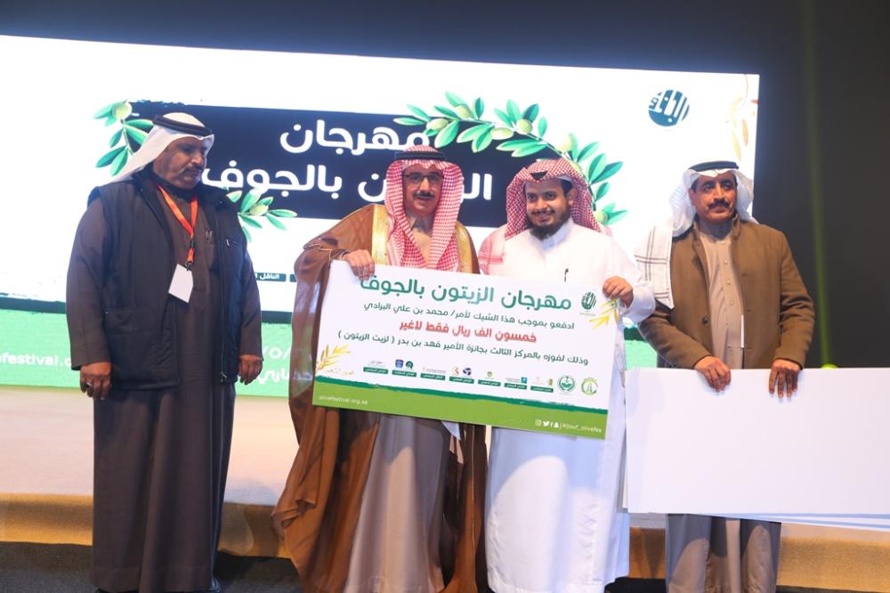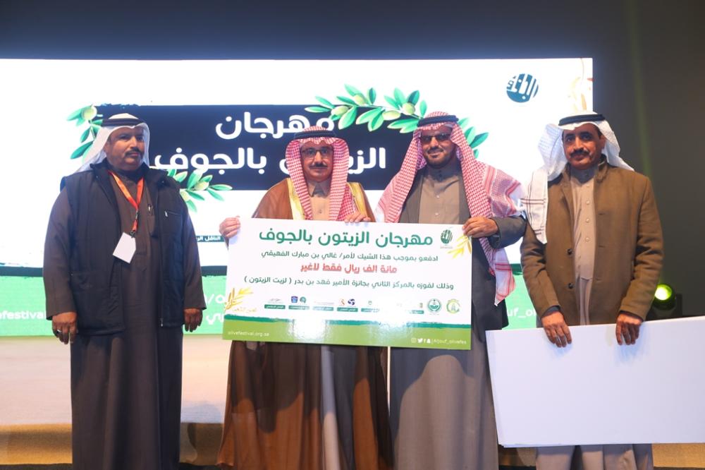 بعد ذلك كرم أمين الجوف الجهات الحكومية المشاركة ورؤساء اللجان، كما كرم لجنة تحكيم مسابقة شاعر الزيتون، بعدها أعلنت أسماء الفائزين بجائزة صاحب السمو الملكي الأمير فهد بن بدر بن عبدالعزيز لأفضل زيت زيتون من مشاركي المهرجان، فاز بالجائزة الأولى وقدرها 150.000 ريال المزارع مدالله لويفي الشراري، وفي الجائزة الثانية فاز المزارع غالي مبارك الفهيقي، وبلغ قيمتها 100.000 ريال، فيما فاز بالجائزة الثالثة المزارع محمد علي البرادي، وقيمتها 50.000 ريال.