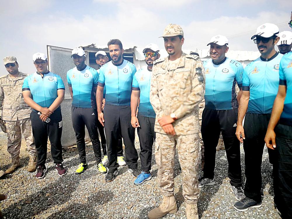 وأوضح قائد فريق مجموعة الدراجين الملازم أول ناصر السويدة أن فريق دراجي الأسطول الشرقي انطلق من المنطقة الشرقية بدعم وتوجية من ولي العهد، ومتابعة من قائد الأسطول البحري وقطع الفريق مسافة (١٩٠٠) كيلومتر من أجل مشاركة الجنود البواسل، ونقل تحيات القوات البحرية بالأسطول الشرقي لزملائهم المرابطين بالحد الجنوبي.