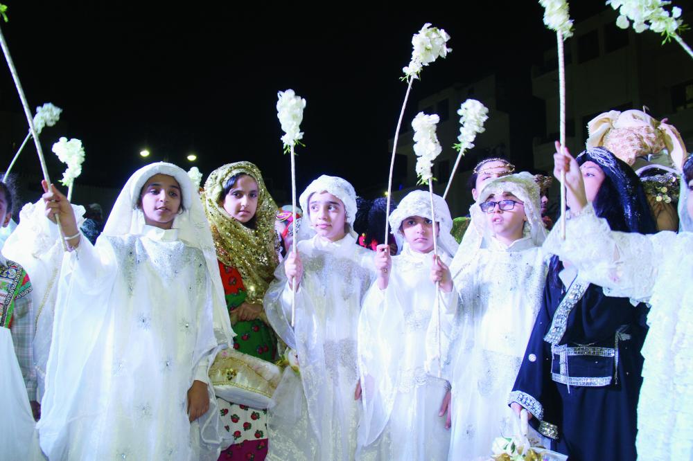 وأقيمت خلال الفعاليات زفة للأطفال باللباس المديني التقليدي ما يسمى «الزبون» وأيضاً لوحات للعروس وزفتها ومراسم الزفاف قديماً والكراسي التي تمشي عليها العروس يوم الحناء.