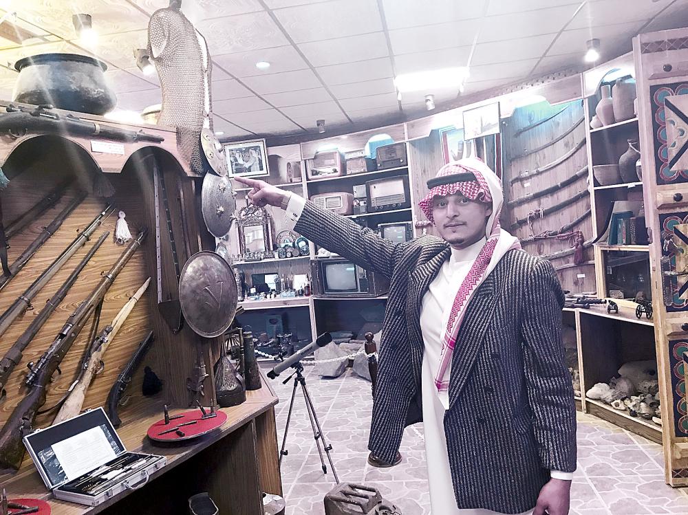 سطام الراشد يتحدث عن مقتنيات المتحف. (عكاظ)