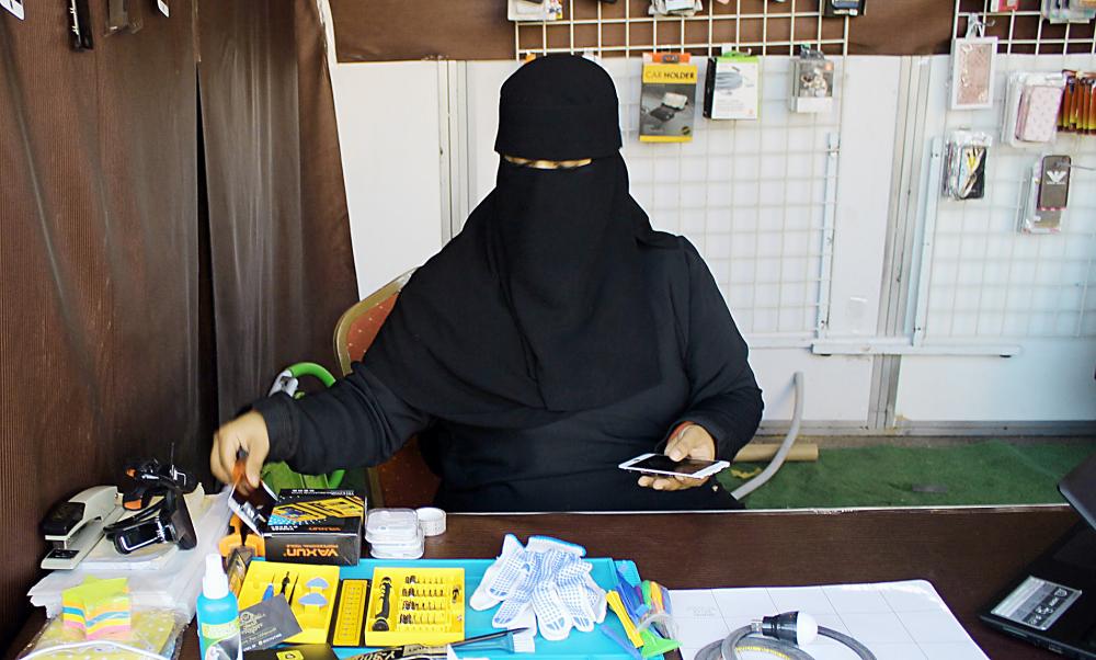 كسرت منال الزهراني احتكار الرجال مجال صيانة الجوالات، وبرعت في المهنة، وأثبتت نجاحها كمندوبة وموزعة قطع صيانة في محافظة الطائف.