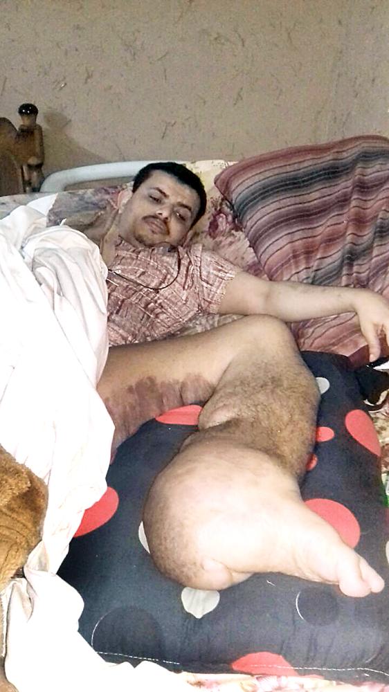 أسرت الأمراض الشاب الثلاثيني حسن محمد القاضي على السرير منذ عامين، دون حراك، إذ يعاني من ورم ليفي في الجهة اليسرى من جسده، شخّصه الأطباء بأنه ورم ليفي عصبي، وتضخم في المسالك البولية والعظام وأعوجاج في العمود الفقري.