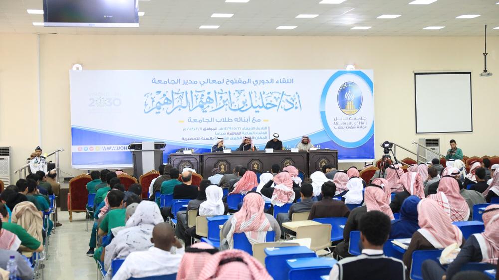 التقى الدكتور خليل بن إبراهيم البراهيم مدير جامعة حائل، بطلاب الجامعة في اللقاء المفتوح، والذي نظمته عمادة شؤون الطلاب، اليوم (الأربعاء)، في القاعة الشرقية بعمادة السنة التحضيرية في مجمع كليات الطلاب.