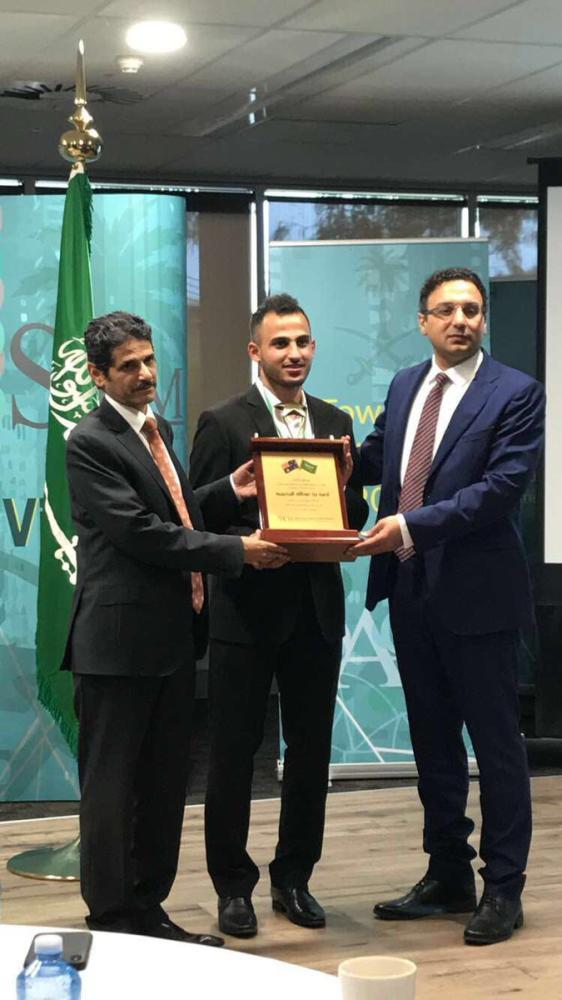 وفي نهاية الحفل سلم القائم بالأعمال والملحق الثقافي بأستراليا الدكتور هشام خداوردي شهادة تقدير للطالب المبتعث.